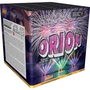 Feuerwerksbatterie Orion mit 25 Schuss, 48 mm Kaliber und 60 Sekunden Brenndauer. Grosse Buketts mit Final-Salve am Schluss.