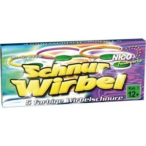5er Packung mit am Boden drehenden Wirbelschnüren. Schnelle Drehung mit buntem Schweif.