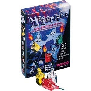 Schächtelchen mit 20 Meteoriten mit Blitz-Stern-Effekt und kräftigem Knistern.