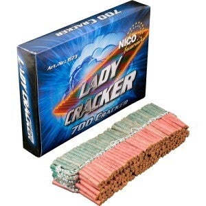Schächtelchen mit 400 Ladycrackern. 10 Bänder à 40 Schuss.