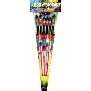 Raketenset aus 15 Raketen, einige davon mit Zerlegerladung.