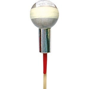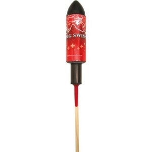 Effektrakete mit Schweif und rot-weissem Sternenbukett.